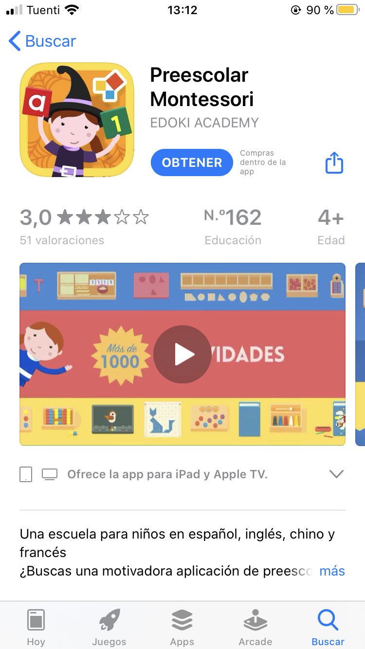 Diseñada por profesores certificados Montessori con varios años de experiencia en las aulas, es una aplicación divertida que gira en torno a los niños/as y que se divide en 4 materias: matemáticas, alfabetización temprana, arte y vida práctica.